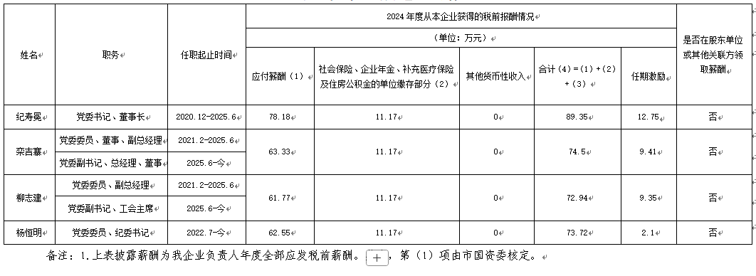 裕龙发展公司企业负责人2024年度薪酬信息披露表